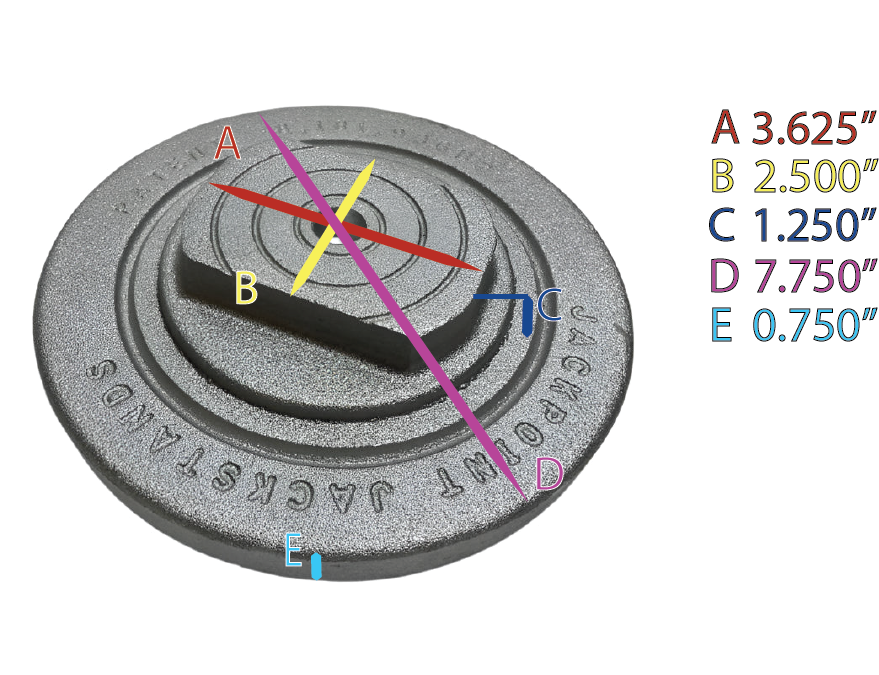 Jackpoint Jackstands are between 12 and 13.5 inches high, depending on the pad. The base is 16 inches wide, and 12 inches deep. Check your floor jack! The jack needs to be 11 ¾ inches wide or less. The lift arm should be 5 3/4 inches wide or less. Once in place, the interlocking system, wide base, and solid aluminum structure is simply unmatched for safety & stability.